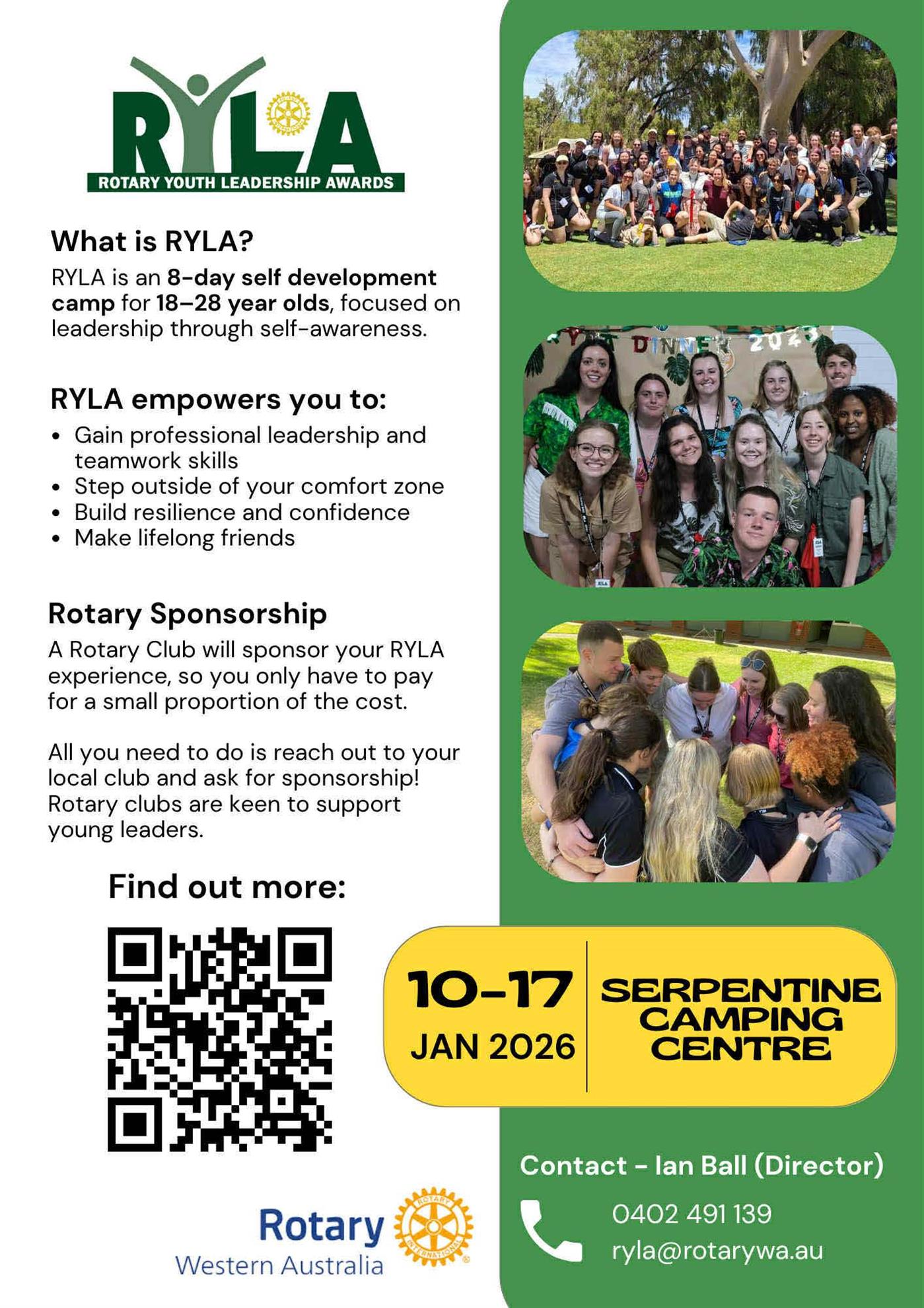Applications for RYLA (Rotary Youth Leadership Awards) for 2026 are open!